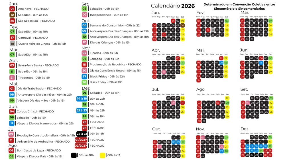 Calendário Anual do Comércio 2026